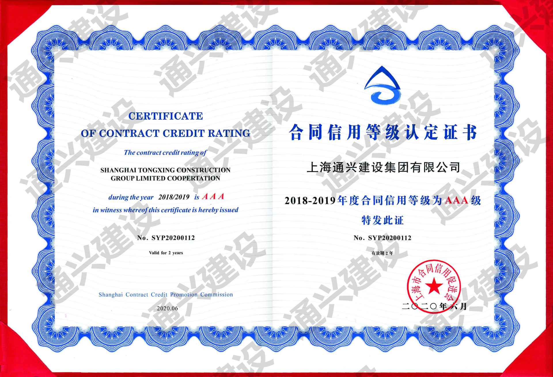 2018-2019年度合同信用等级AAA级
